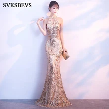 Special Chance of SVKSBEVS 2019 Elegant Halter Sequined Bodycon Mermaid Long Dresses Party Crystal Hollow Out Zipper Back Maxi Dress
