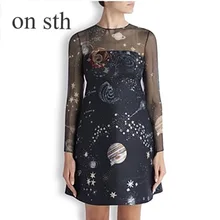 Offer Description for 2019 Spring Summer New Women Wear Star Pattern Print Dress Perspective Chiffon Fashion Women Temperament Commuting Printing